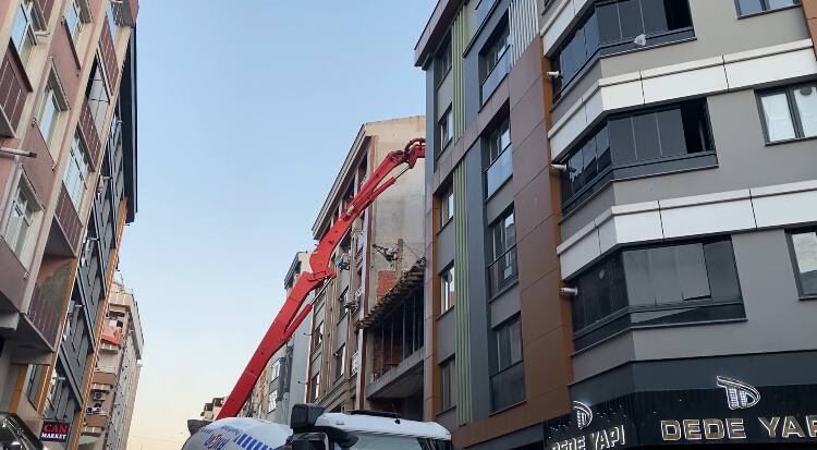 İnşaatta yapılan beton dökme işlemi sırasında yandaki binanın duvarı çöktü